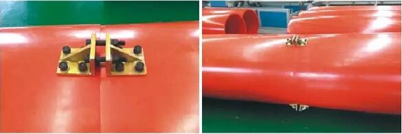超高分子量聚乙烯隧道逃生管連接為對夾式螺栓連接。3米/根,每根端有三個90°直角帶孔金屬件,連接時先把對夾金屬件按管道鉆好的孔安裝牢固,相鄰兩根管道按連接件對齊連接就可。
